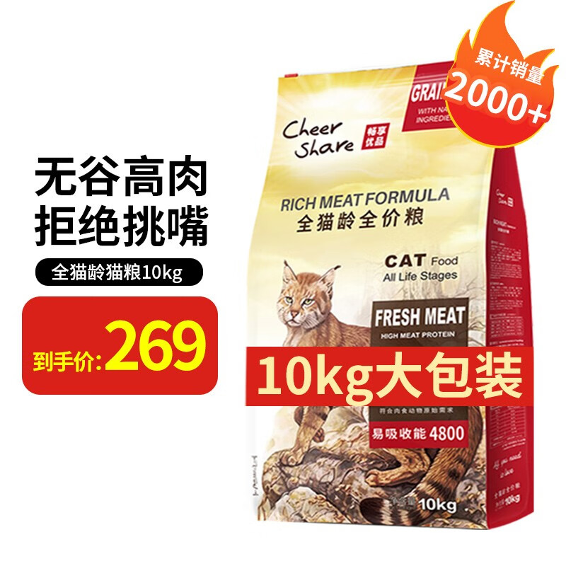 畅享优品(Cheer Share)豪礼可选!畅享猫粮10kg高肉高蛋白无谷天然猫粮全猫粮 10kg/20斤