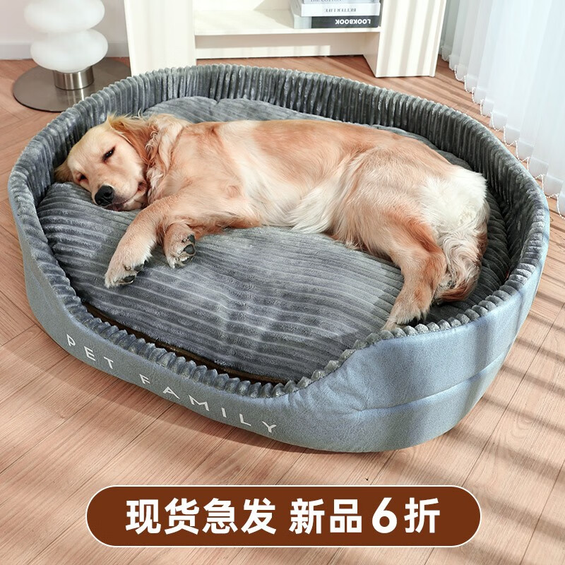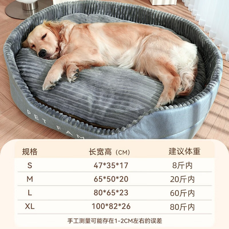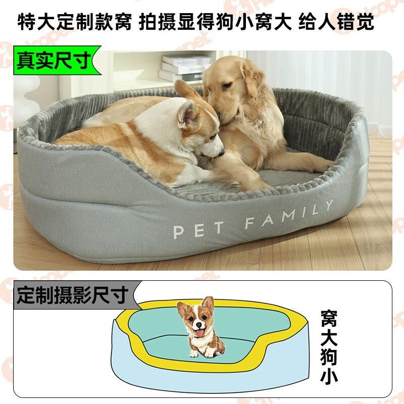 hoopet狗窝四季通用狗床中大型犬睡觉可拆洗宠物狗垫子狗狗窝秋冬季保暖 灰蓝窝 厚棉垫【无惧降温】 M 65*50*20(推荐30斤内)