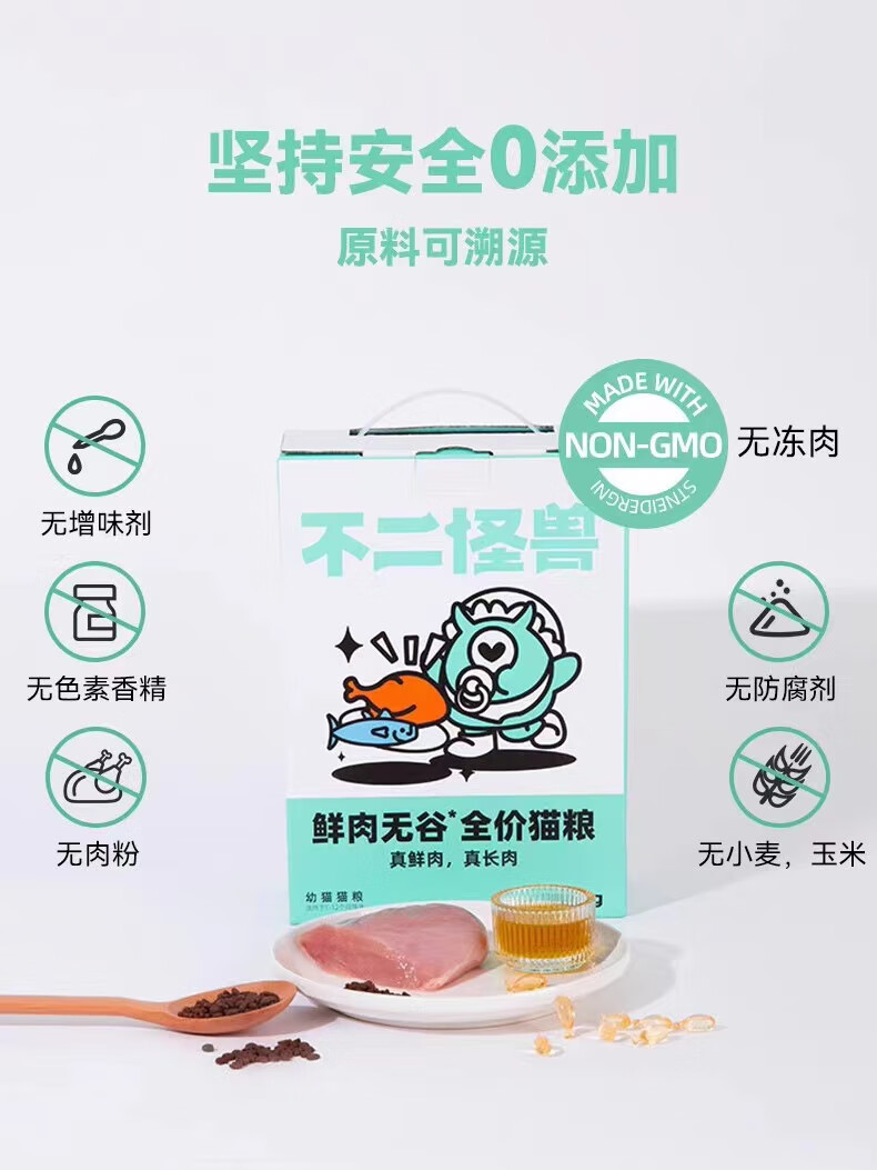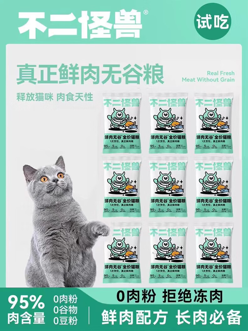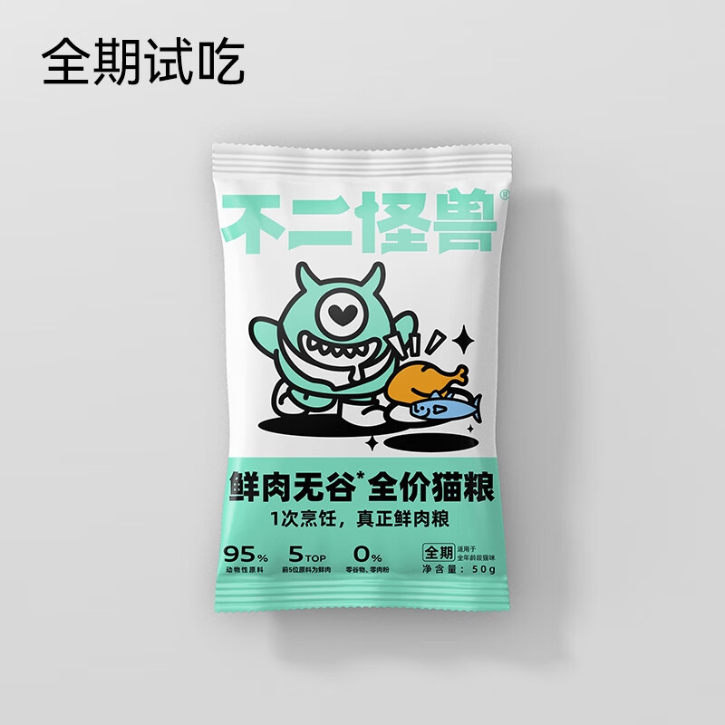 不二怪兽无谷鲜肉全价猫粮成猫幼猫专用增肥发腮试吃装 50g 单包【全期】