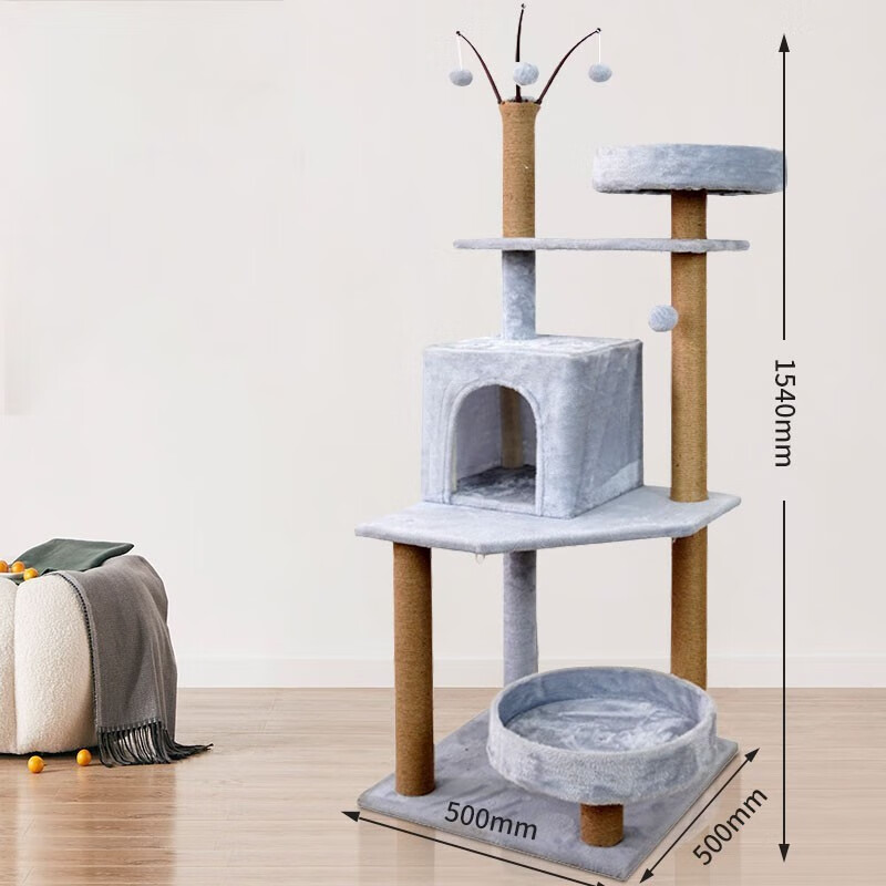 Mamypets 猫爬架猫窝猫树一体猫抓板大型抓柱猫咪用品四季通用小型猫咪架子 【快乐喵星别墅】九层猫屋一体,2个猫窝 1个跳台 甄选板材 稳固耐用