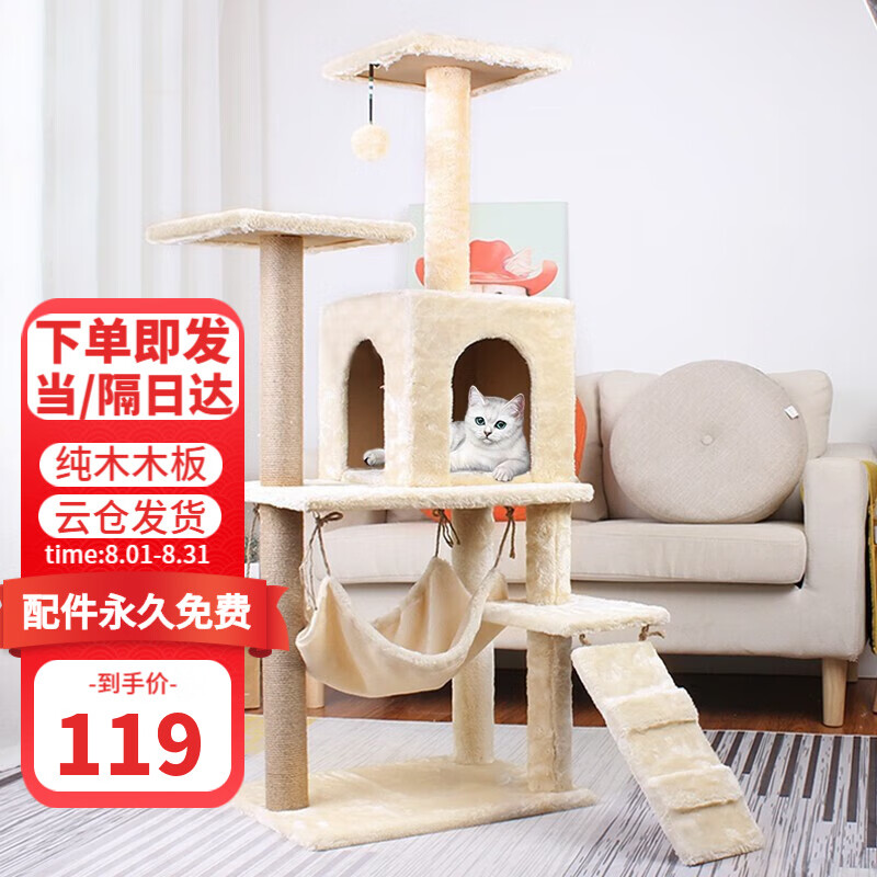 坏小宠【1.88m加粗加高柱】猫爬架大号剑麻猫窝猫咪玩具猫抓板猫抓柱毛绒布猫跳台猫架子猫玩具猫树 米色 四层款
