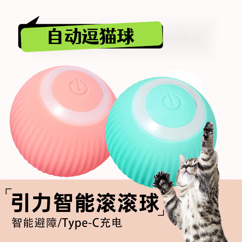 初展 自动逗猫球 充电动猫咪玩具球自动遛狗球 自嗨解闷逗猫棒智能滚滚球 小猫咪用品猫狗宠物玩的玩具 绿色 款