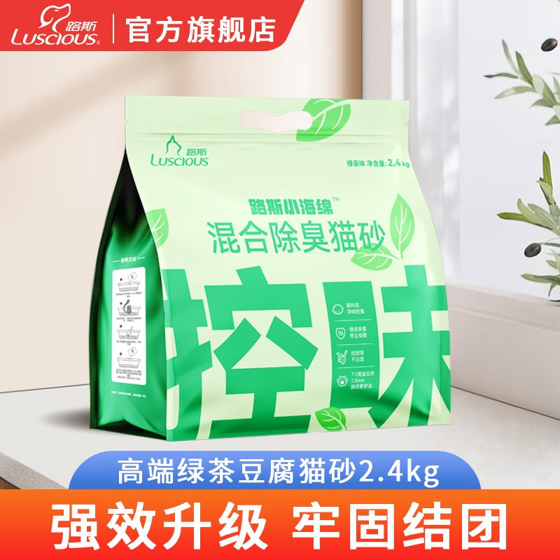 路斯小海绵混合除臭猫砂豆腐猫砂低尘可冲马桶猫咪用品 绿茶味2.4kg