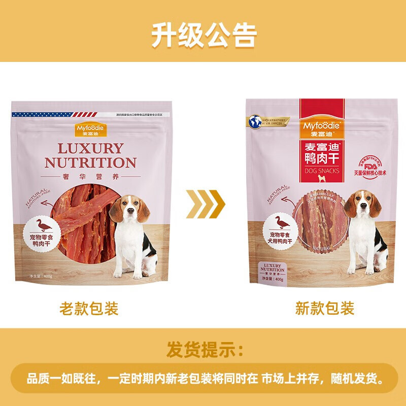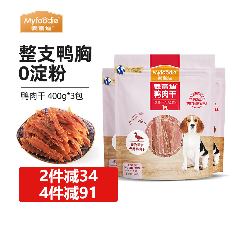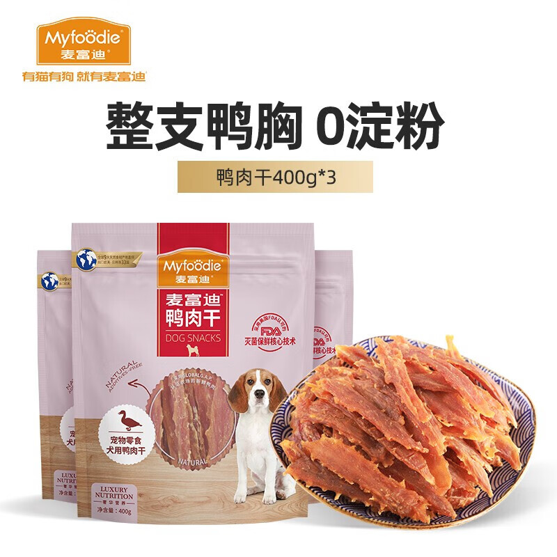 麦富迪狗零食400g*3包鸡肉干鸭肉干牛肉棒卷甘薯成幼犬训练奖励狗狗零食 鸭肉干400g*3包