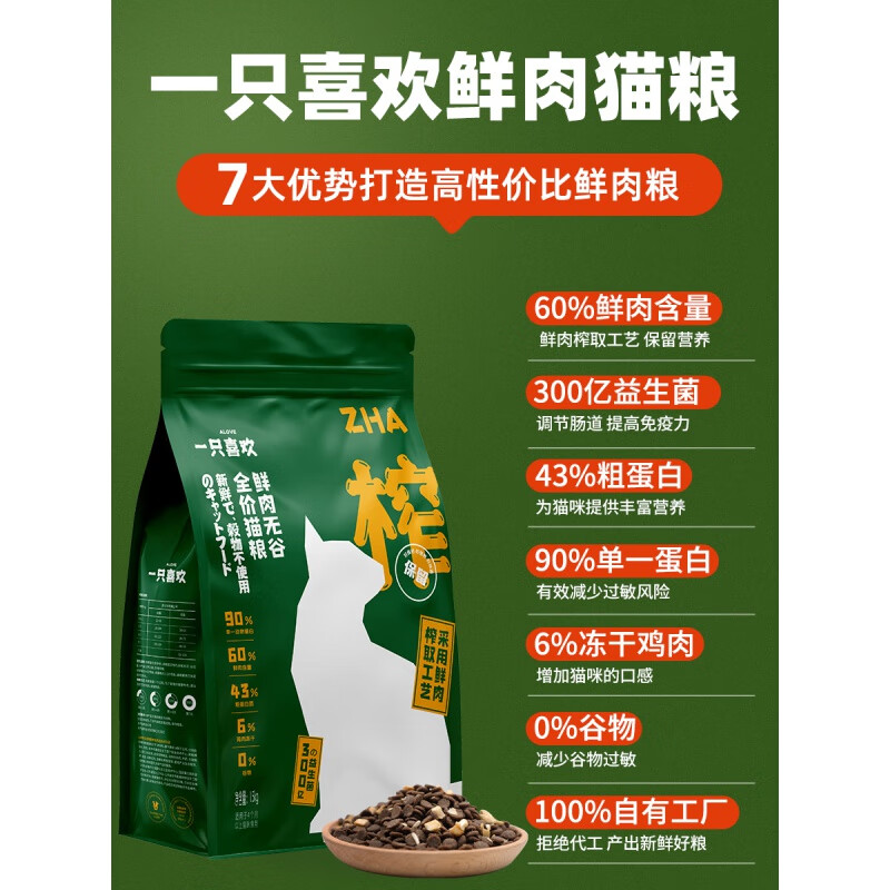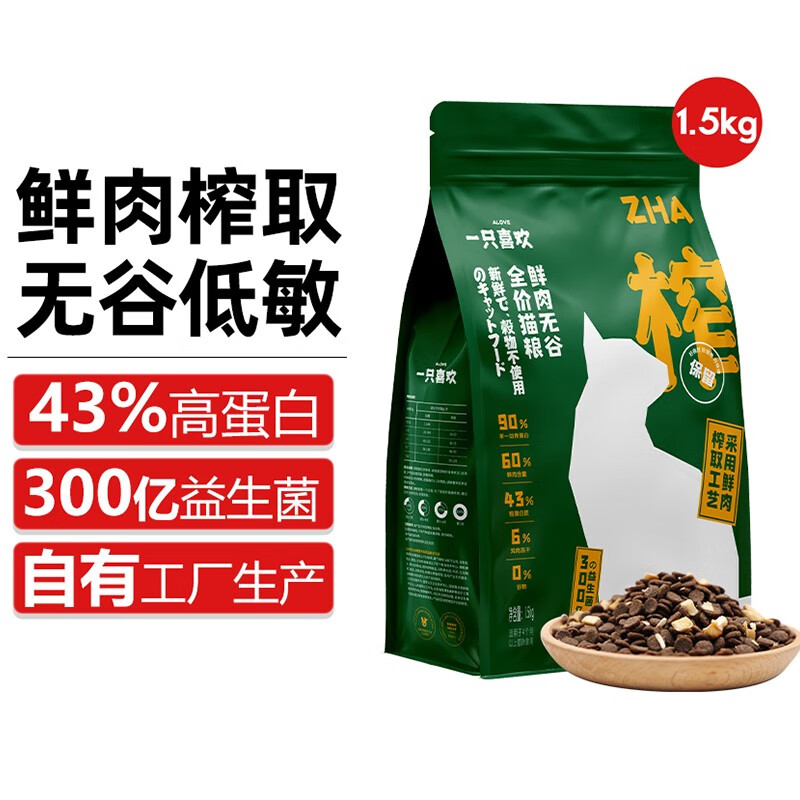一只喜欢 鲜肉无谷全价猫粮 冻干猫粮成猫增肥营养 1.5kg*2