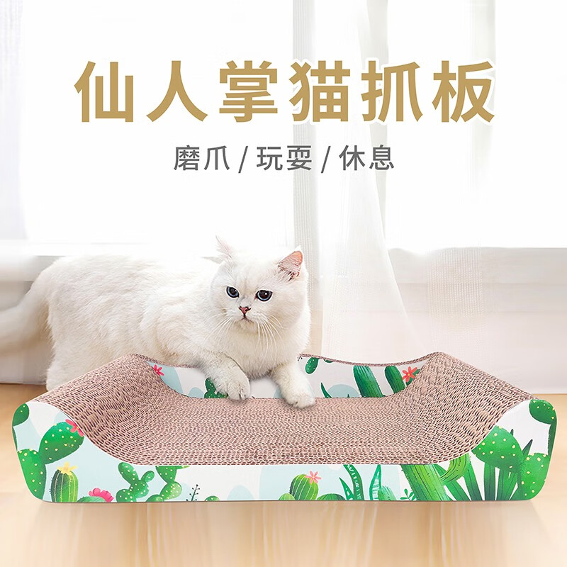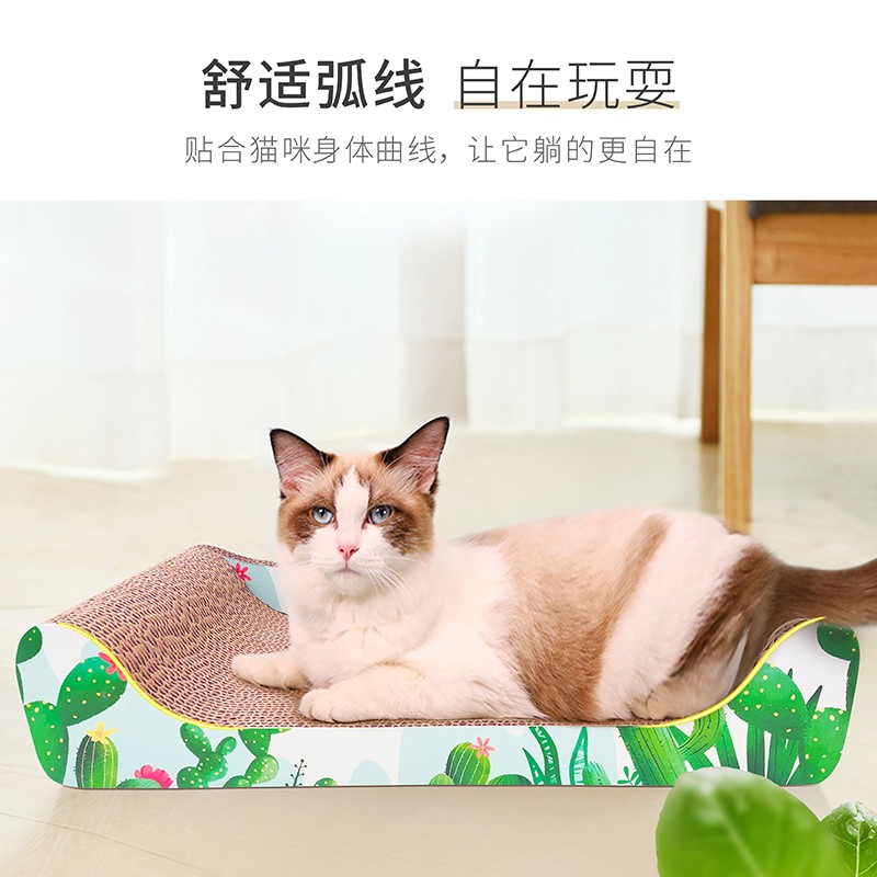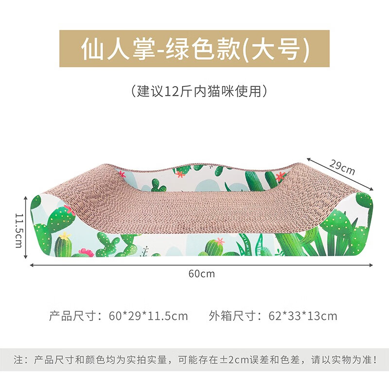 得酷 猫抓板 沙发床贵妃椅瓦楞纸猫窝磨爪器耐磨猫咪玩具用品 仙人掌沙发床 60*27*11.5C 适12斤内猫
