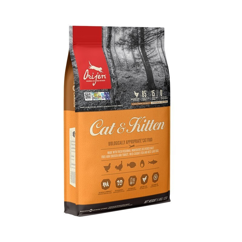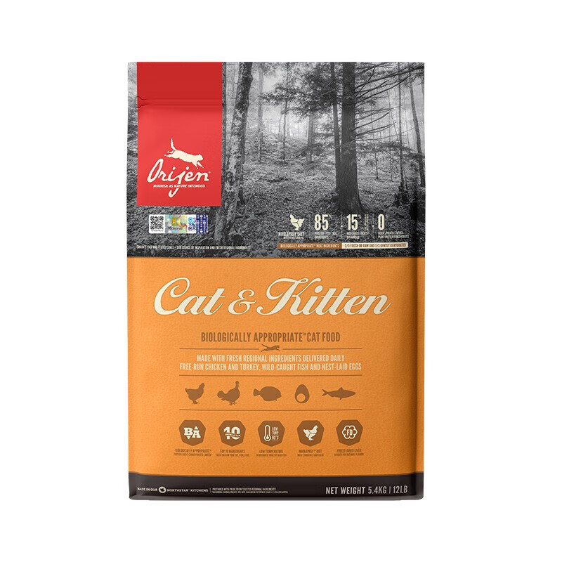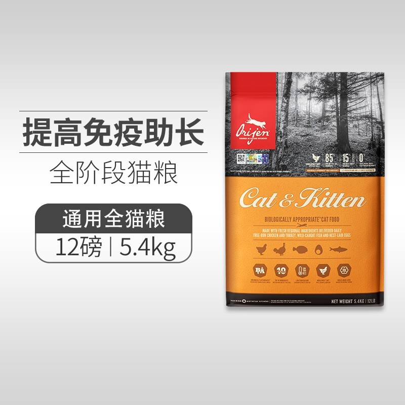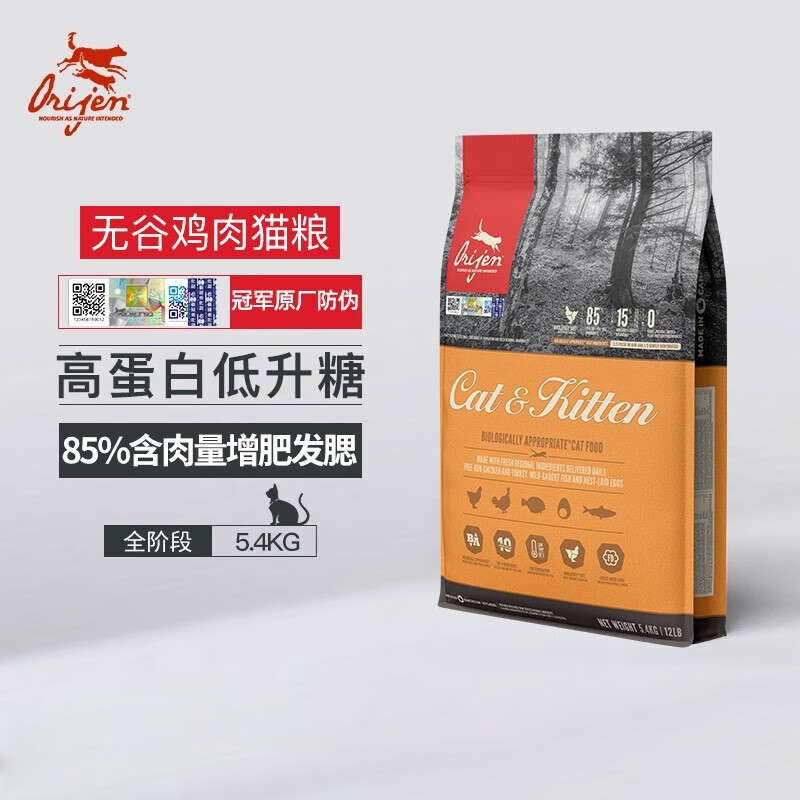 Orijen渴望猫粮成猫幼猫全阶段通用 加拿大进口天然无谷鸡肉味全期全价猫粮 新款冠军防伪标 爱猫猫粮鸡肉味 5.4kg*1袋