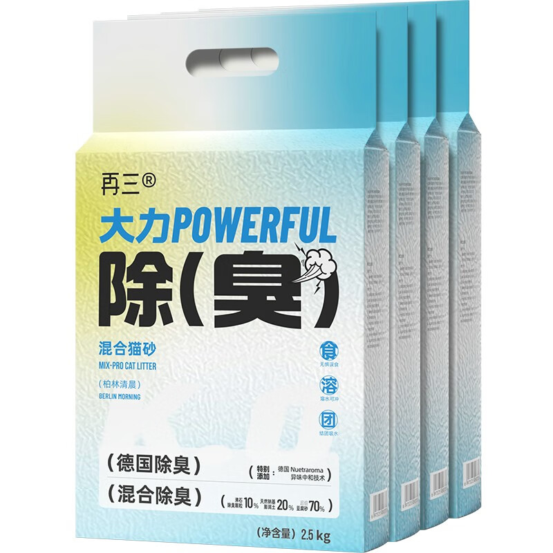 再三混合猫砂豆腐膨润土活性炭德国除臭结团无尘猫咪用品 2.5kg*4袋 再三混合猫砂2.5*4袋