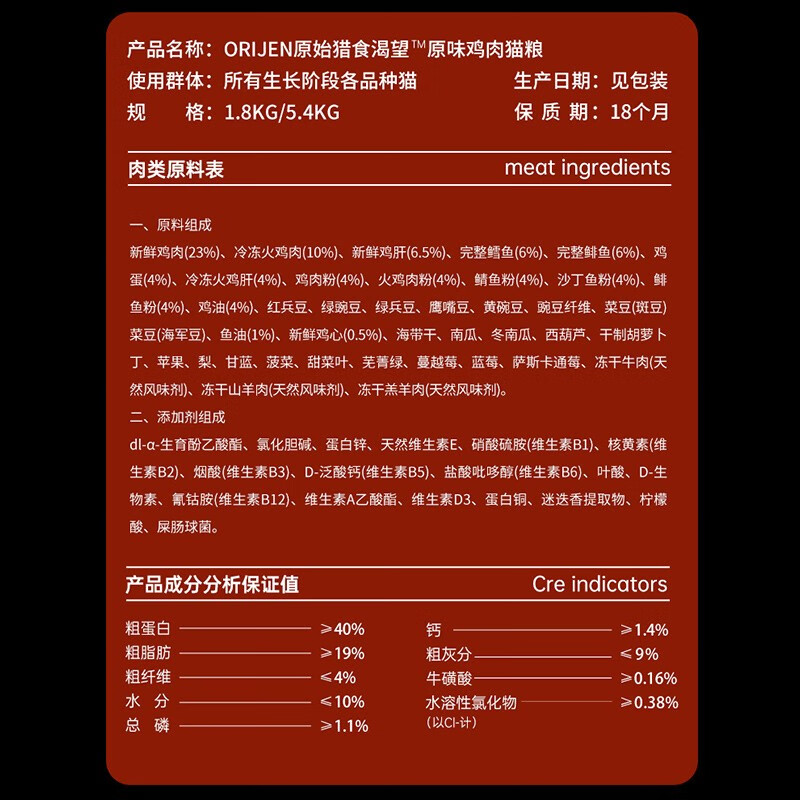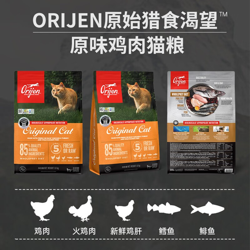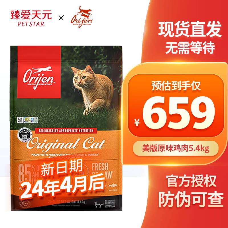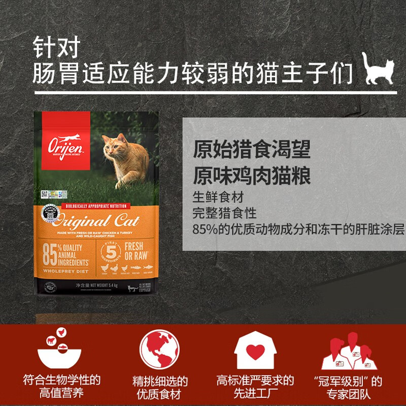 原始猎食渴望(ORIJEN)猫粮原装进口猫粮成猫天然无谷猫干粮 美版原味鸡肉5.4kg 效期24/4