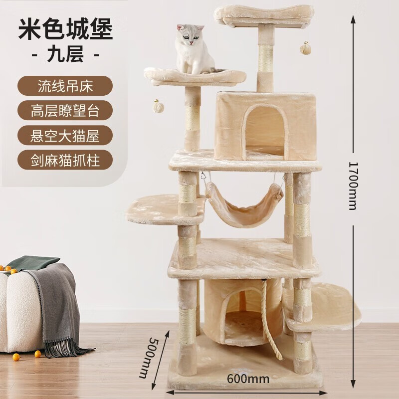 Mamypets 猫爬架猫窝猫树一体猫抓板大型抓柱猫咪用品四季通用小型猫咪架子 【魔幻太空城堡】九层猫屋一体,2个猫窝 1个吊床 甄选板材 稳固耐用