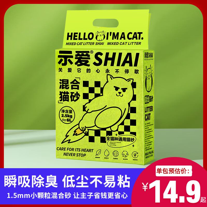 示爱示爱混合豆腐猫砂除臭无尘10膨润土大袋2.5公斤可冲厕所奶香猫沙 【经典奶香】5斤*2包(10斤)