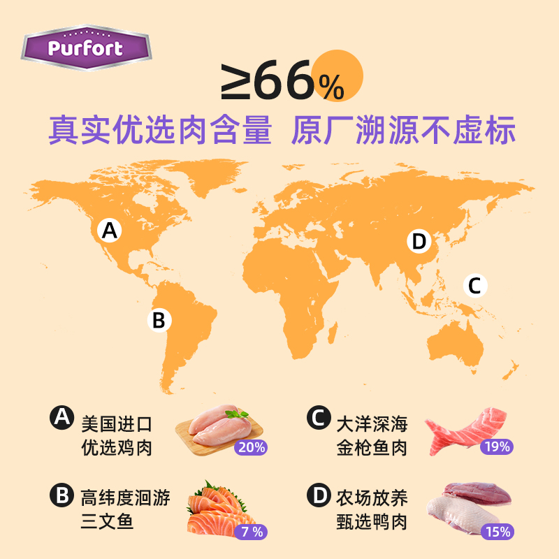 Purfort无谷全价幼猫猫粮专用1-12月奶糕小猫离乳成猫全期通用3斤