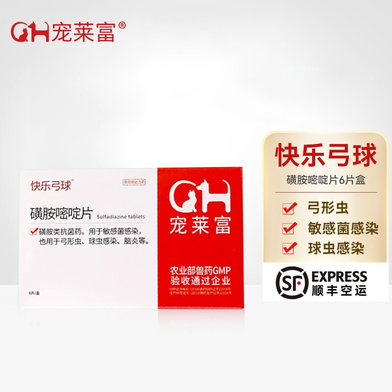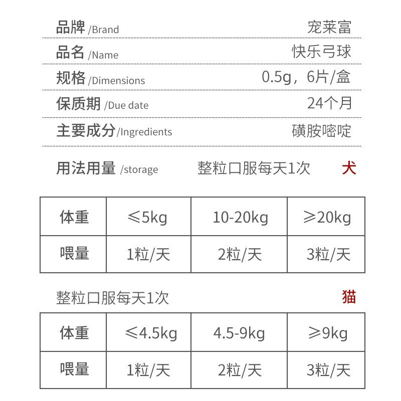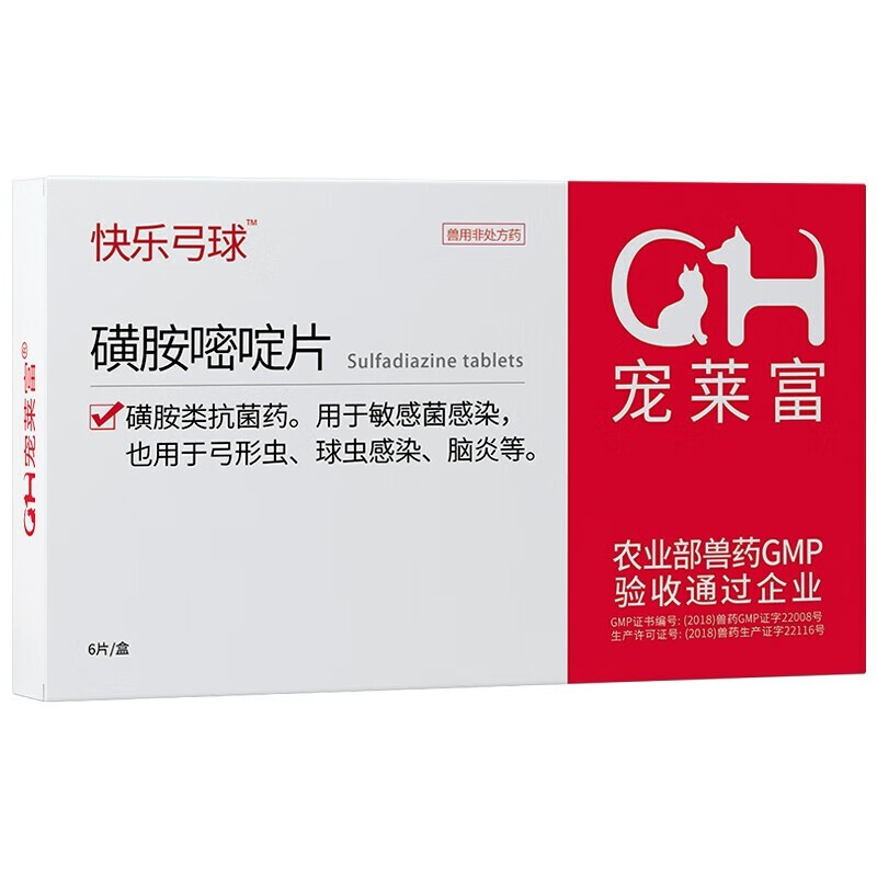 【顺丰空运】宠莱富犬猫球虫拉稀血便狗狗弓形虫猫咪体内驱虫打虫药磺胺嘧啶片快乐弓球宠物弓形虫病驱虫药