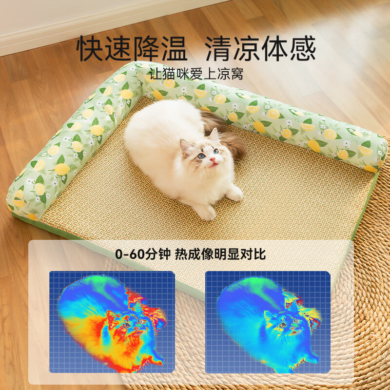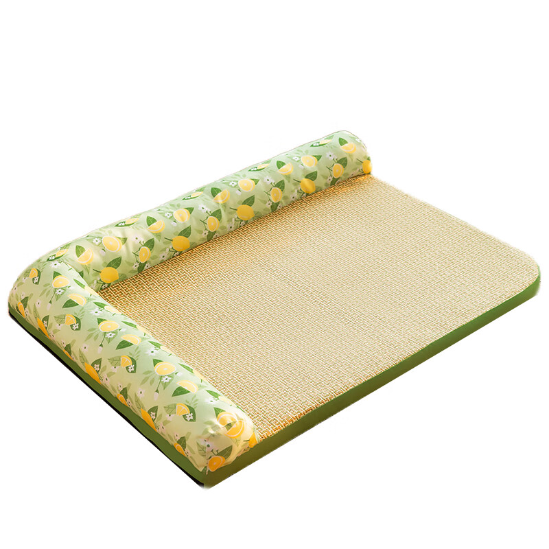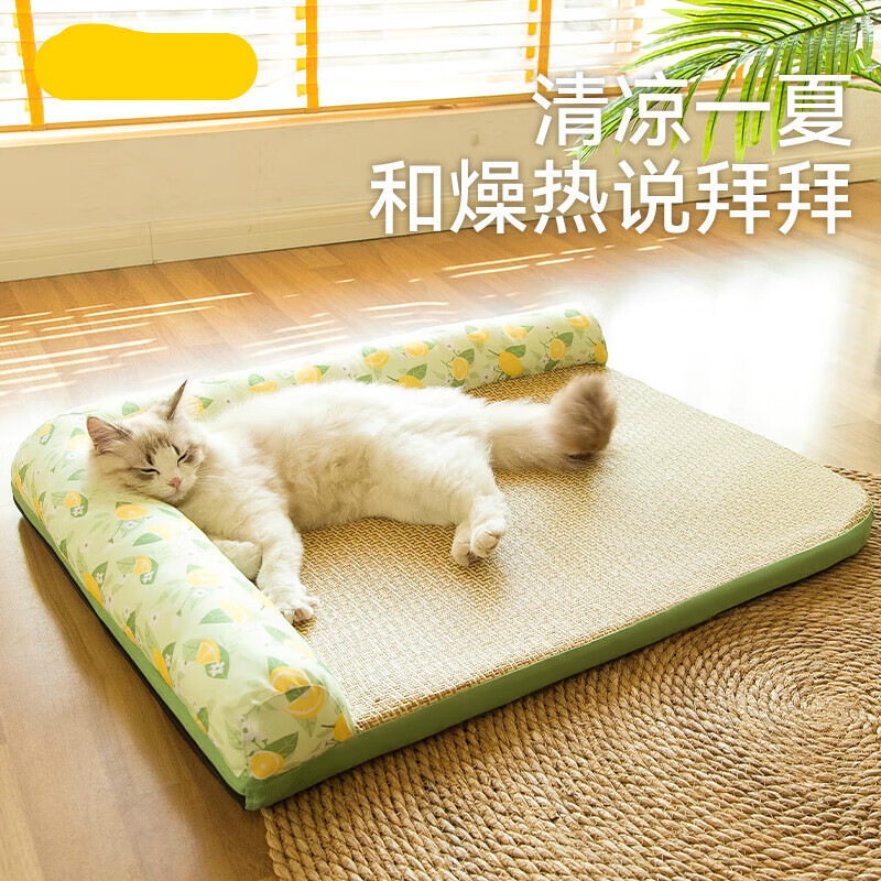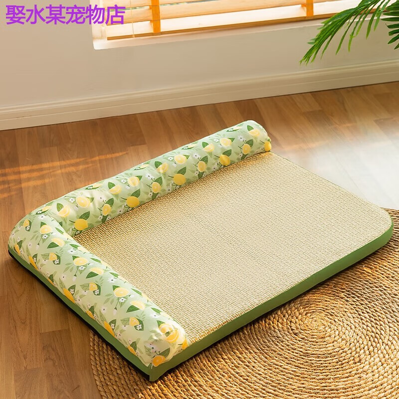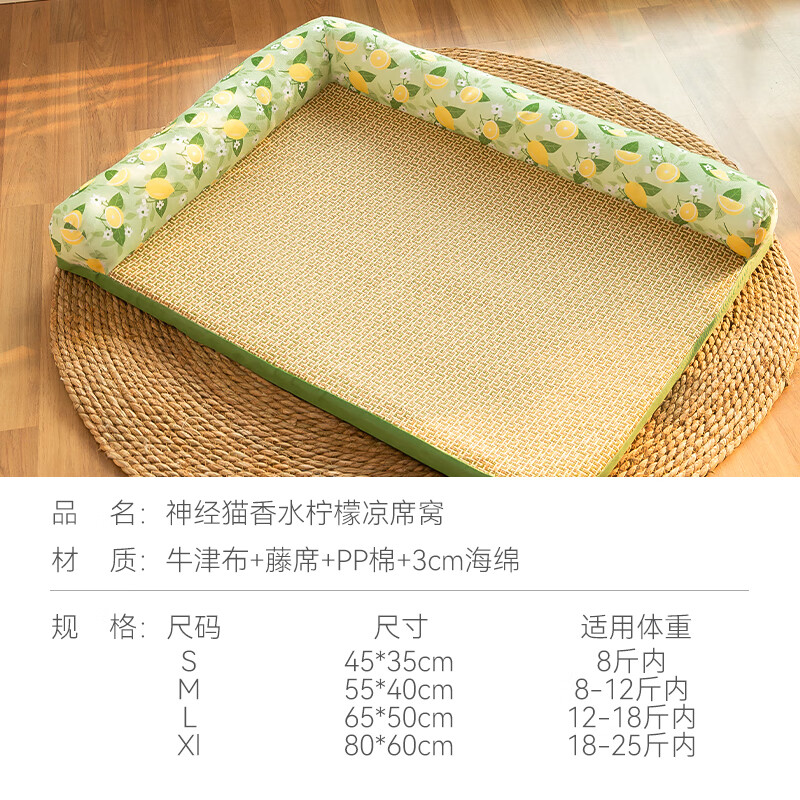 凯蒂奥猫窝夏季凉席窝夏天狗窝垫子猫咪冰垫狗狗睡垫小型犬泰迪凉窝冰窝 绿色藤席3cm厚垫 可拆洗垫子 M码-建议体重7-12斤内