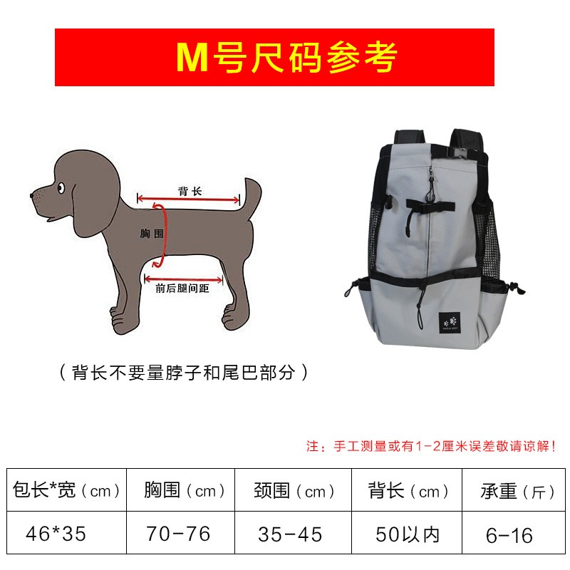 共度(Gong Du)背狗包双肩大号透气露头宠物狗包狗背包小型犬中型犬背狗袋 狗包中号M6-16斤背长50cm