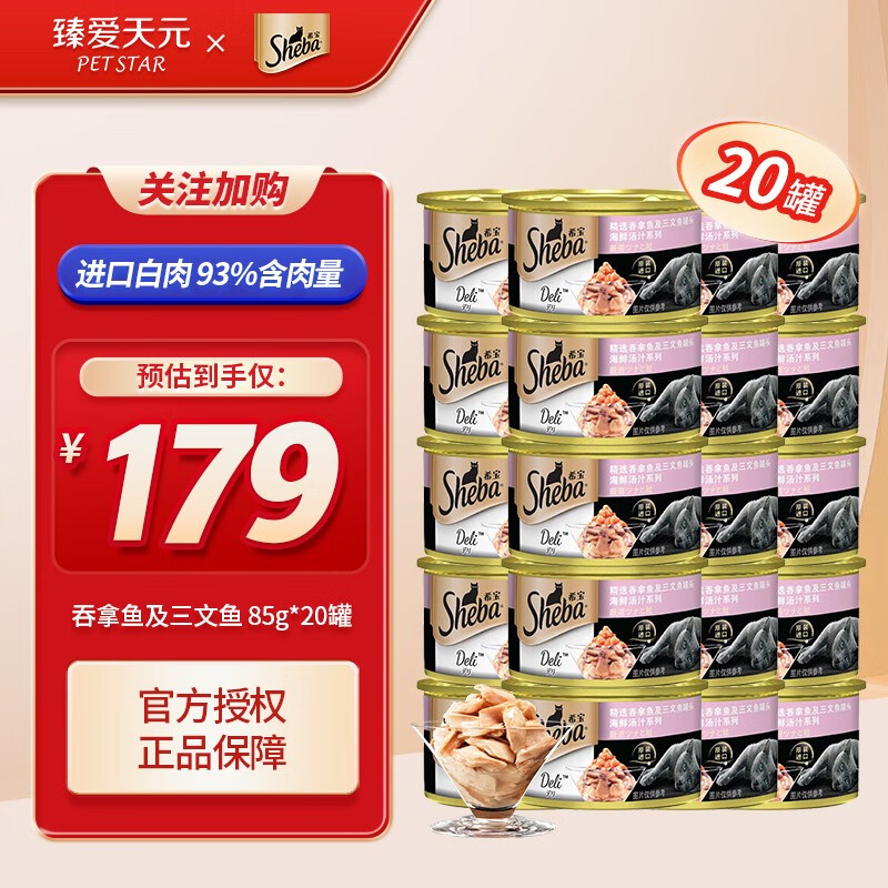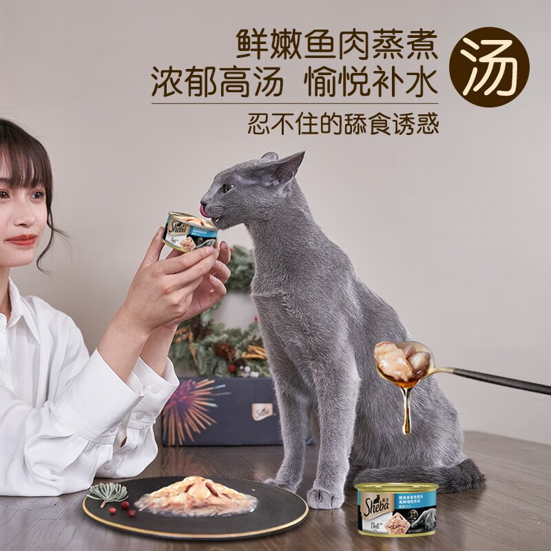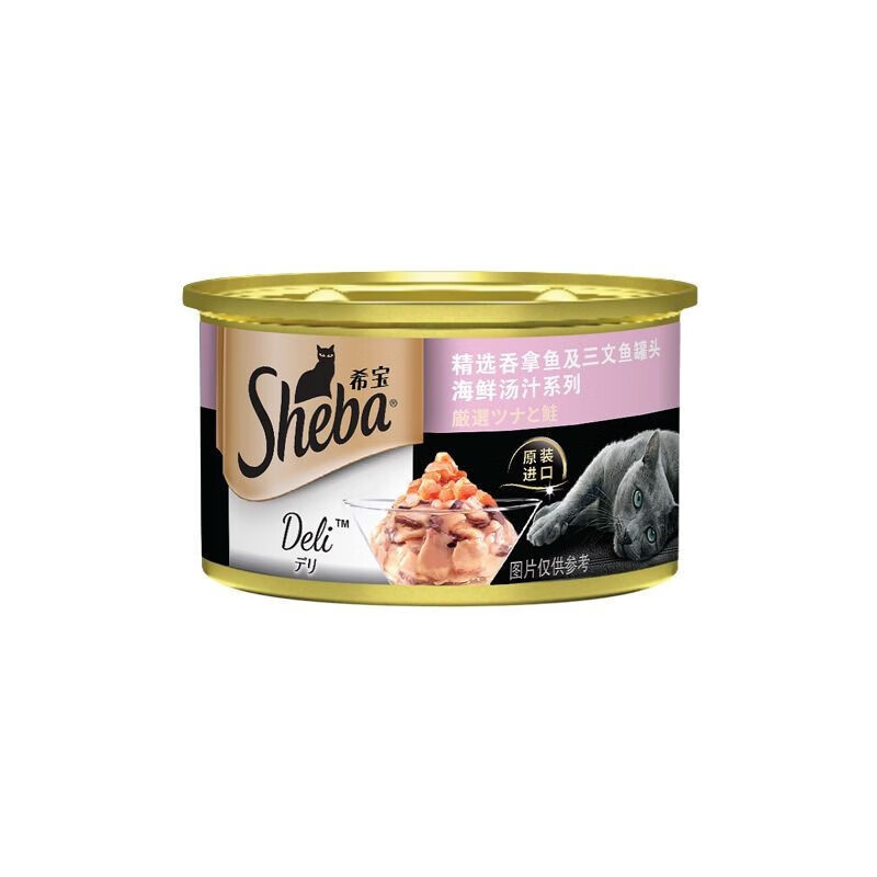 希宝(Sheba)猫罐头sheba猫湿粮猫零食 吞拿鱼及三文鱼 海鲜汤汁85g*20
