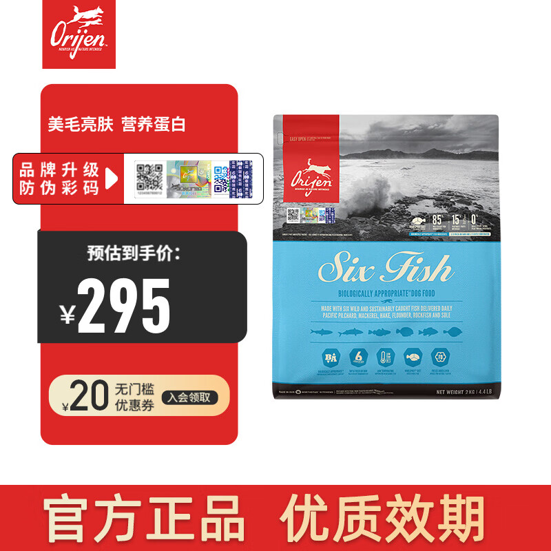 Orijen原始猎食渴望加拿大进口六种鱼狗粮美毛去泪痕成犬幼犬通用2kg 【加拿大品牌升级防伪彩码】