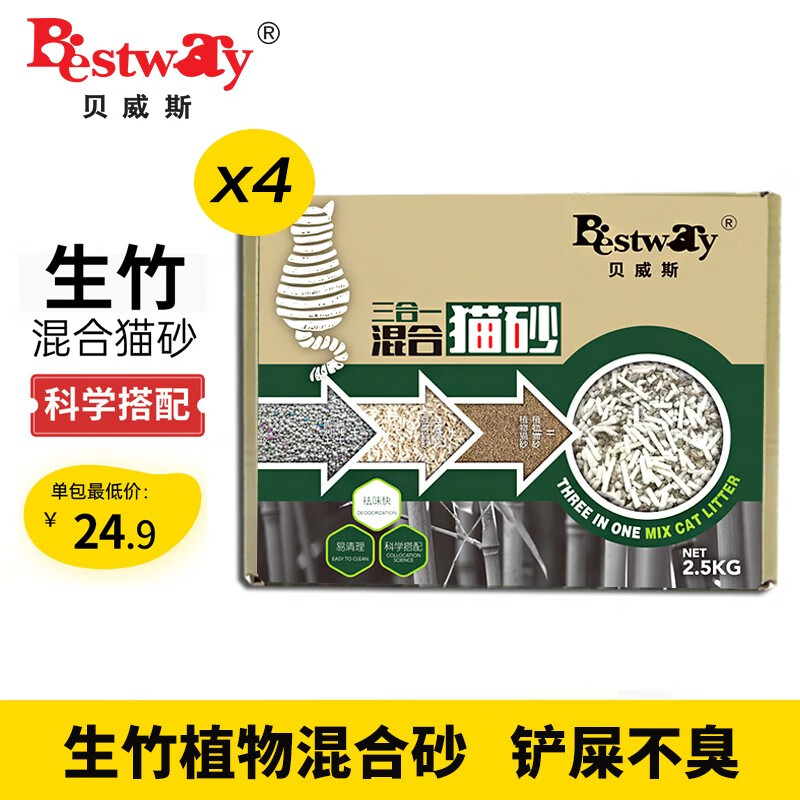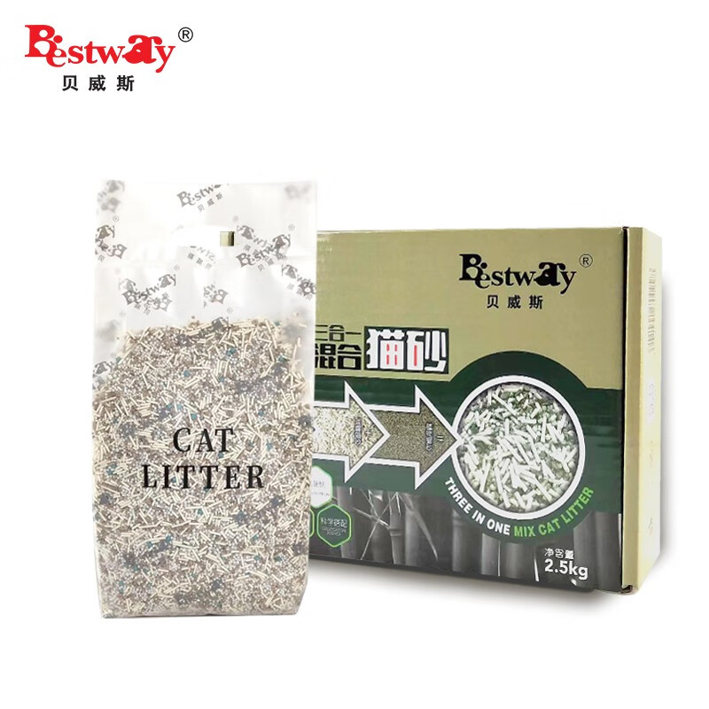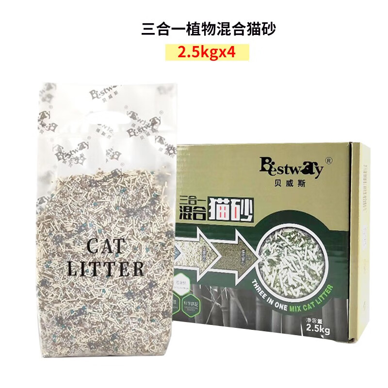 贝威斯三合一混合植物猫砂2.5kg除臭低尘豆腐砂幼猫咪祛味猫沙快速结团 实惠购丨三合一混合植物猫砂2.5kg*4
