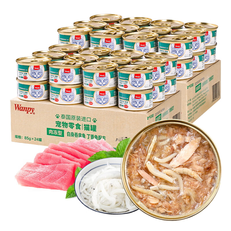 泰国进口 顽皮(Wanpy)猫罐头85g*48罐 白身吞拿鱼 丁香鱼罐头(肉冻型) 成幼猫宠物猫咪零食湿粮