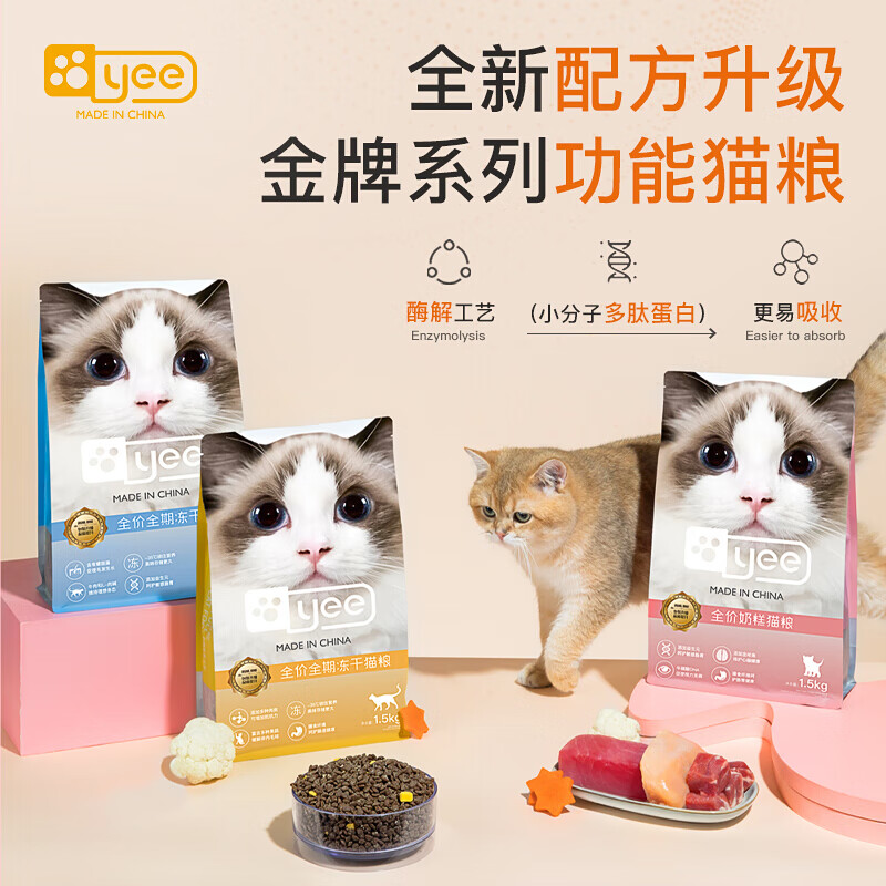 意牌猫粮YEE冻干双拼成幼猫粮增肥全价全期猫干粮 冻干双拼 1.5kg*3