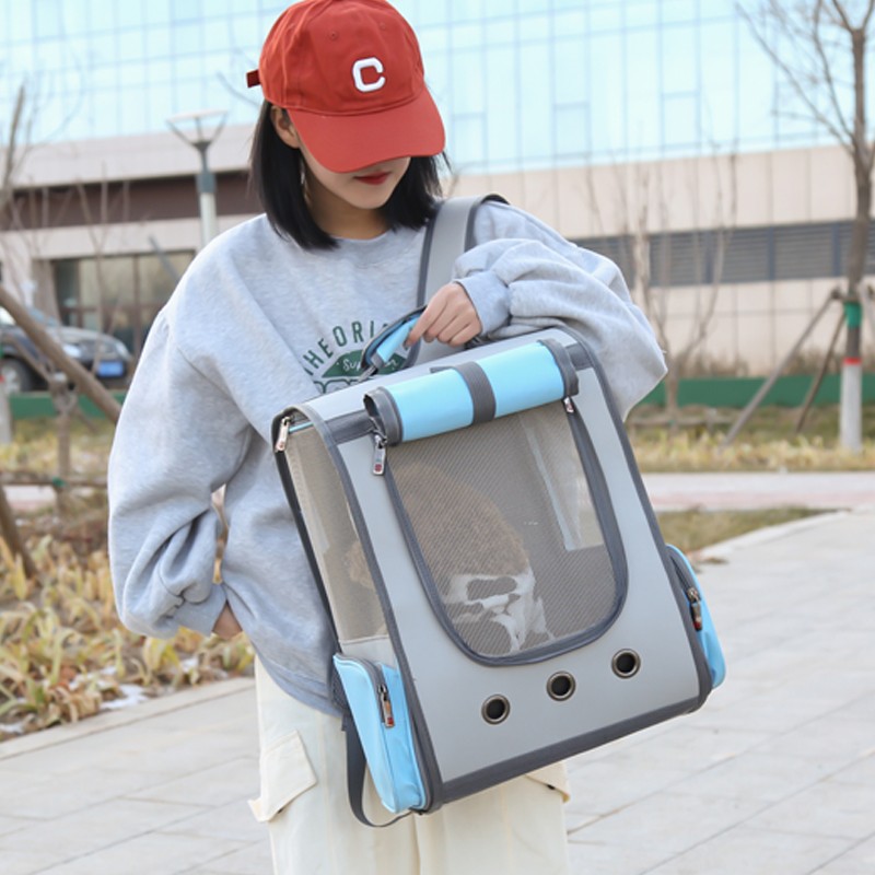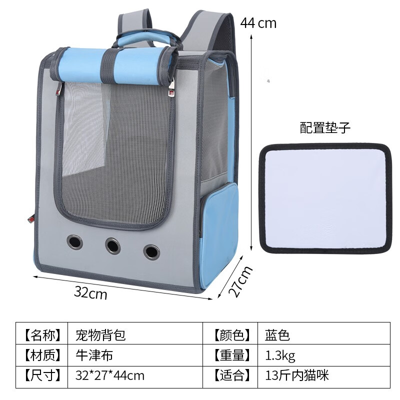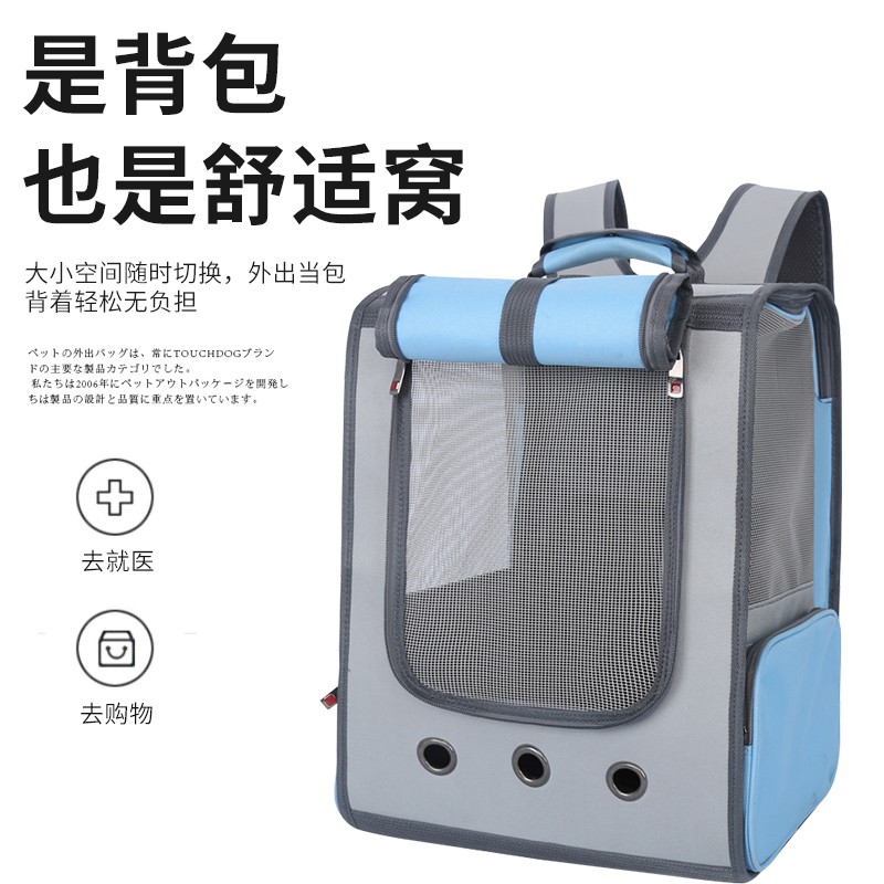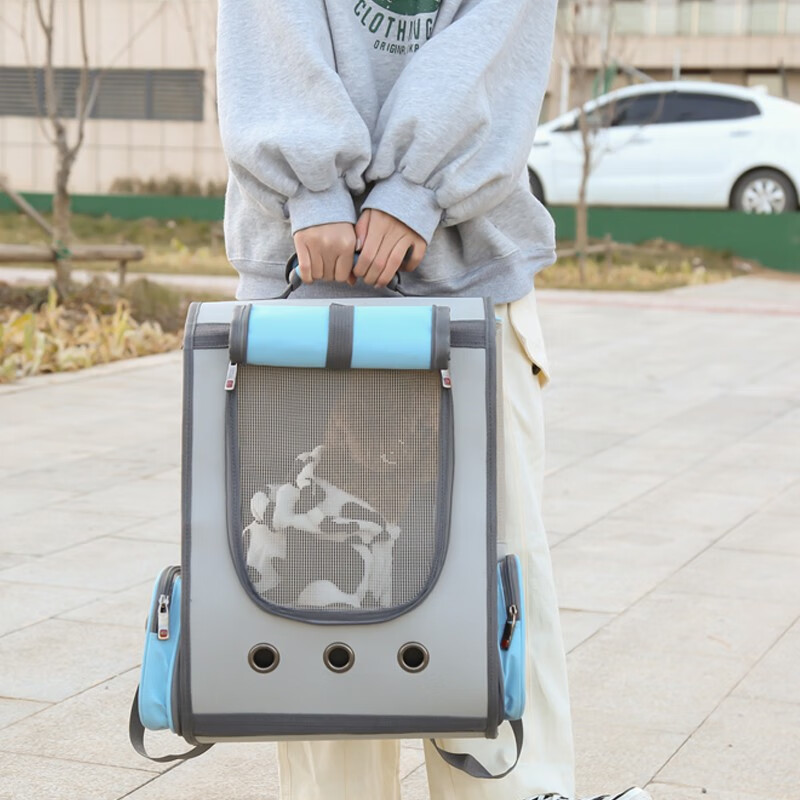 宠物码头 猫包外出宠物包猫背包双肩包书包航空小号太空包猫猫太空舱狗狗猫咪航空箱猫袋猫咪狗出行透气用品 全景透气旅行包 蓝色