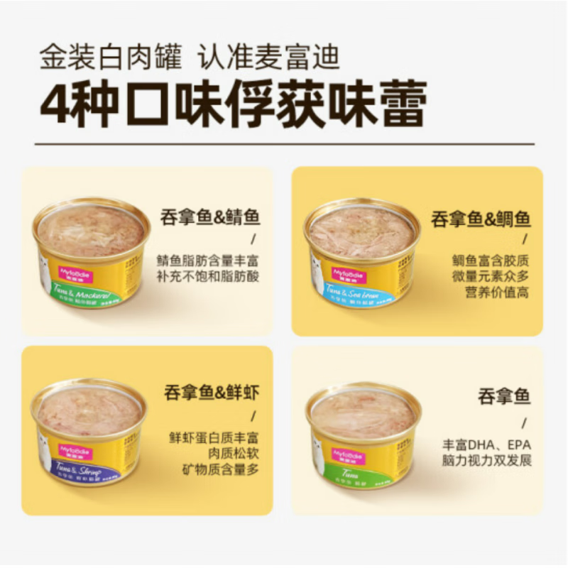 麦富迪85g猫白肉罐头泰国进口浓汁型白肉罐头成猫幼猫宠物猫零食 (浓汁型)吞拿鱼85g*24罐