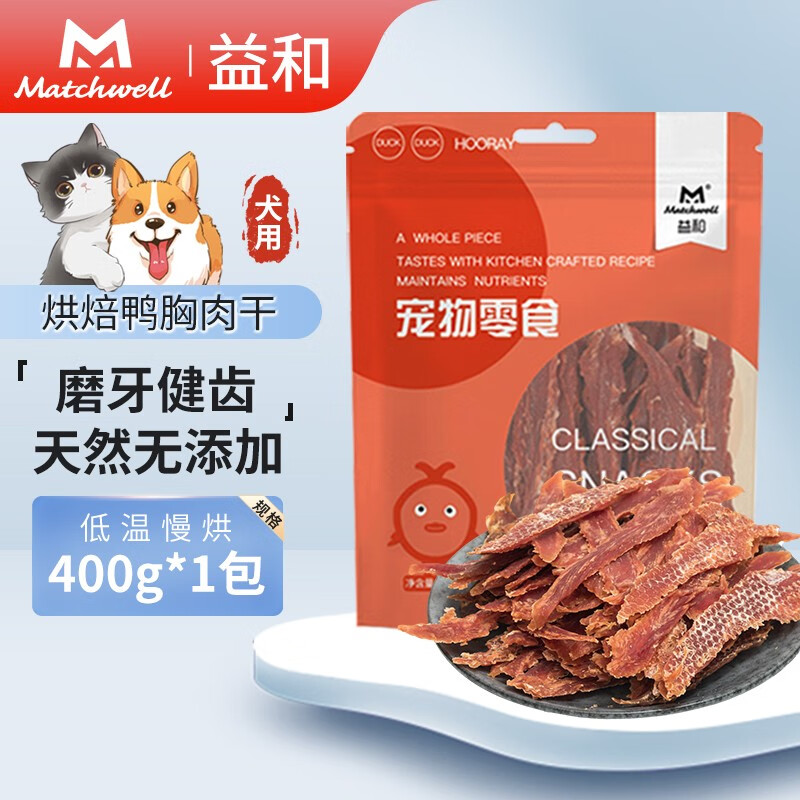 益和狗零食烘焙肉干磨牙棒结骨鸡胸肉鸭洁齿狗啃骨头冻干鸭肉薯条 烘焙鸭胸肉干(400克)