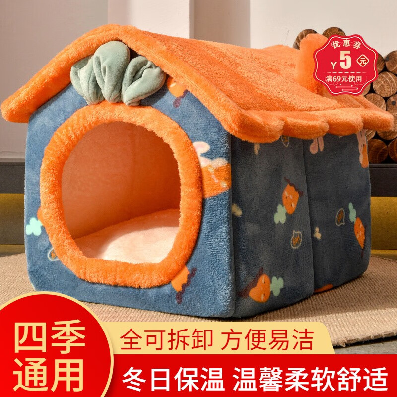 法耐狗窝四季通用狗屋房子小型犬可拆洗网红泰迪狗床冬天保暖宠物用品 丁香萝卜 小号-适合7斤内宠物