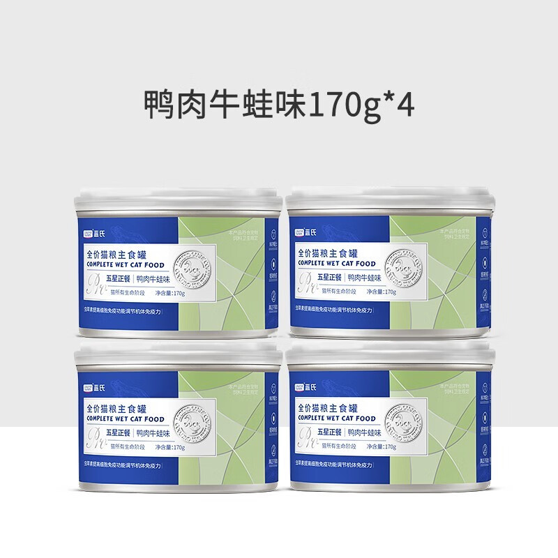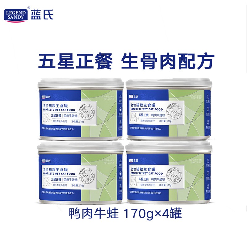 蓝氏LEGENDSANDY生骨肉全价主食猫罐头五星正餐 鸭肉牛蛙170g*4罐