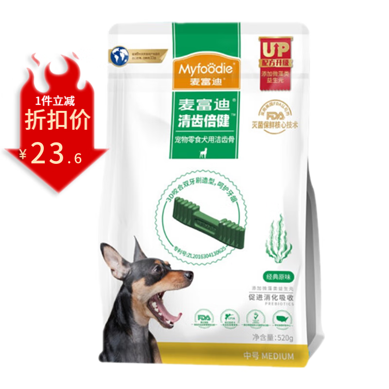 麦富迪 Myfoodie清齿倍健洁齿骨狗狗磨牙棒狗咬胶宠物零食 成幼犬 中号520g