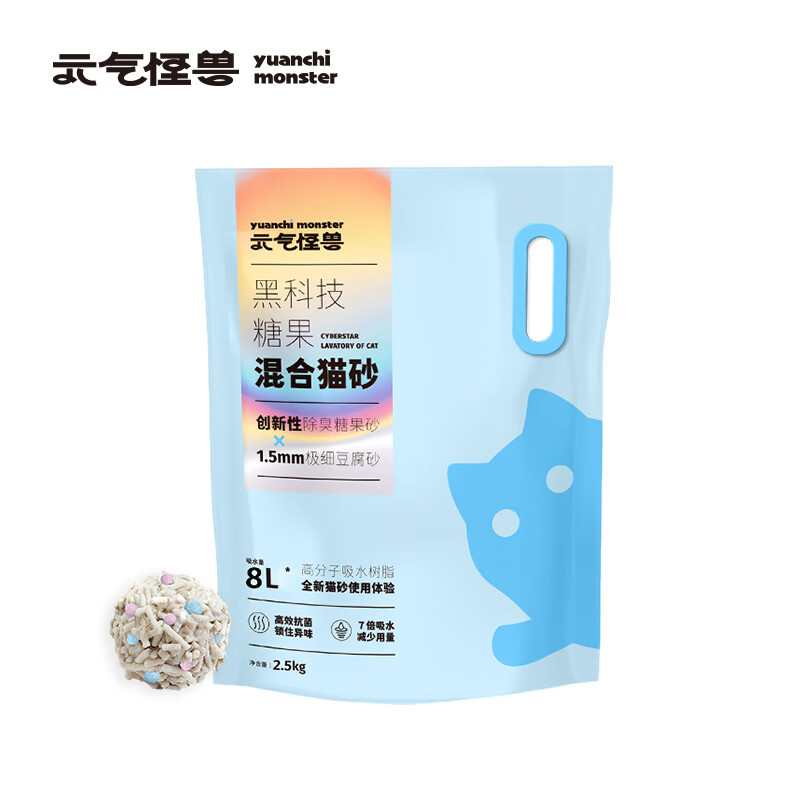 元气怪兽 黑科技除臭糖果砂2.5kg*1包 豆腐混合猫砂高吸水高效结团无尘猫咪用品