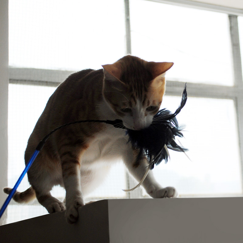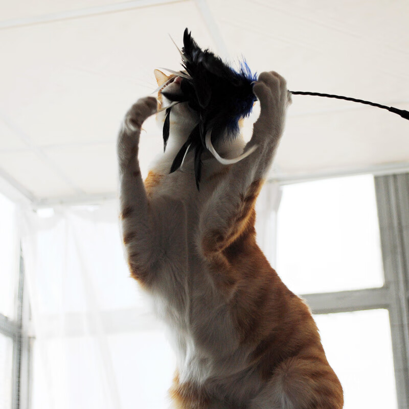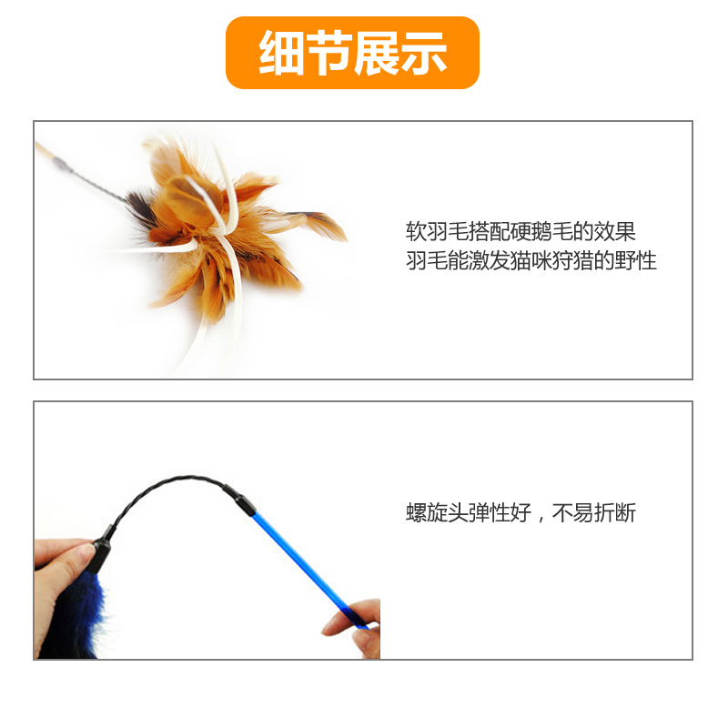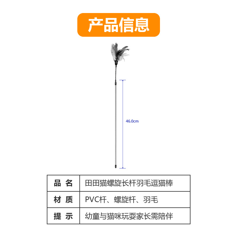 田田猫螺旋长杆羽毛逗猫棒羽毛逗猫杆猫玩具猫用品