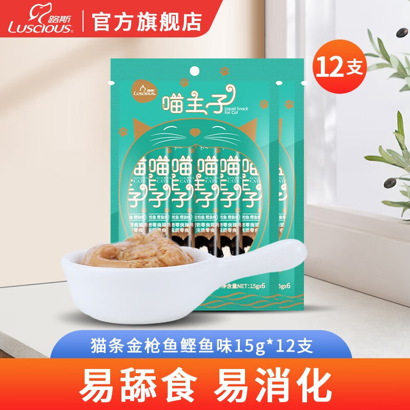 路斯猫条猫咪零食罐头营养成幼猫湿粮流质零食猫罐头 【2包共12支】金枪鱼鲣鱼味