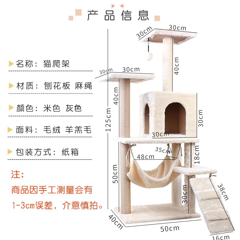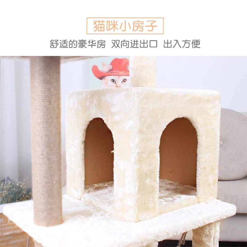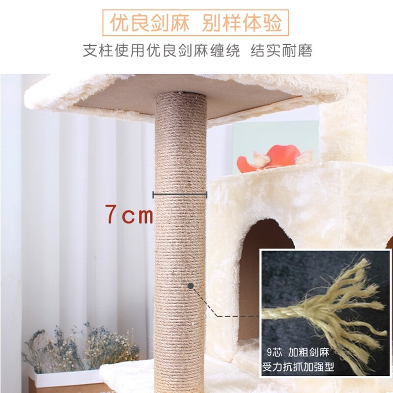 【165加固型】猫爬架四层大型豪华猫玩具猫架子剑麻宠物猫窝猫抓板猫抓柱猫跳台猫爬树猫咪磨爪用品 120cm 4层 米色