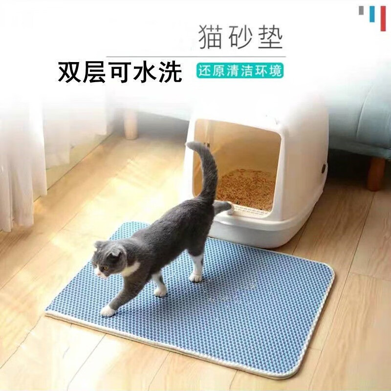 猫砂垫双层 过滤防带出猫砂防溅可水洗双层控砂猫厕所垫子猫咪用品大孔径防外溅控砂板双层猫砂盆垫蹭脚垫 双层粉色 【55*75】