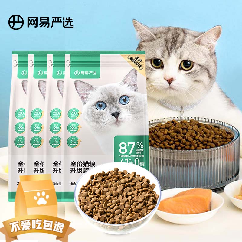 网易严选 全价猫粮 居家宠物主粮幼猫成猫全价粮猫咪食品 7.2kg(4袋整箱装)