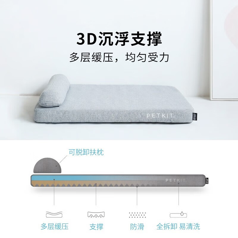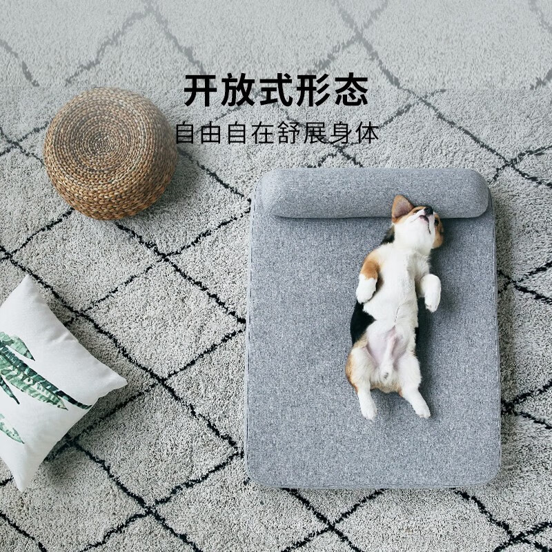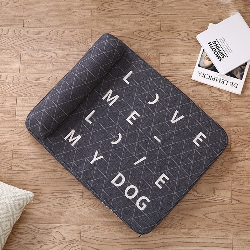 小佩狗垫子狗窝 深睡四季保暖秋冬大中小型犬狗狗床可拆洗宠物床垫 浅灰色 L-90*70*16CM