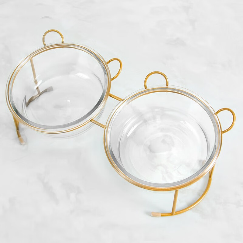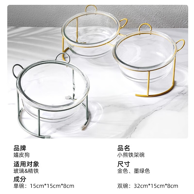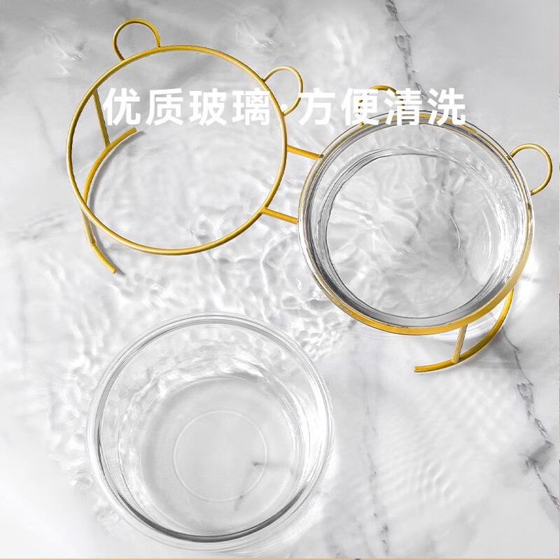 嬉皮狗(hipidog)猫碗玻璃猫食盆双碗狗碗宠物碗猫粮碗水碗猫咪用品保护颈椎防打翻 【萌宠小熊】金色#双碗 犬猫通用