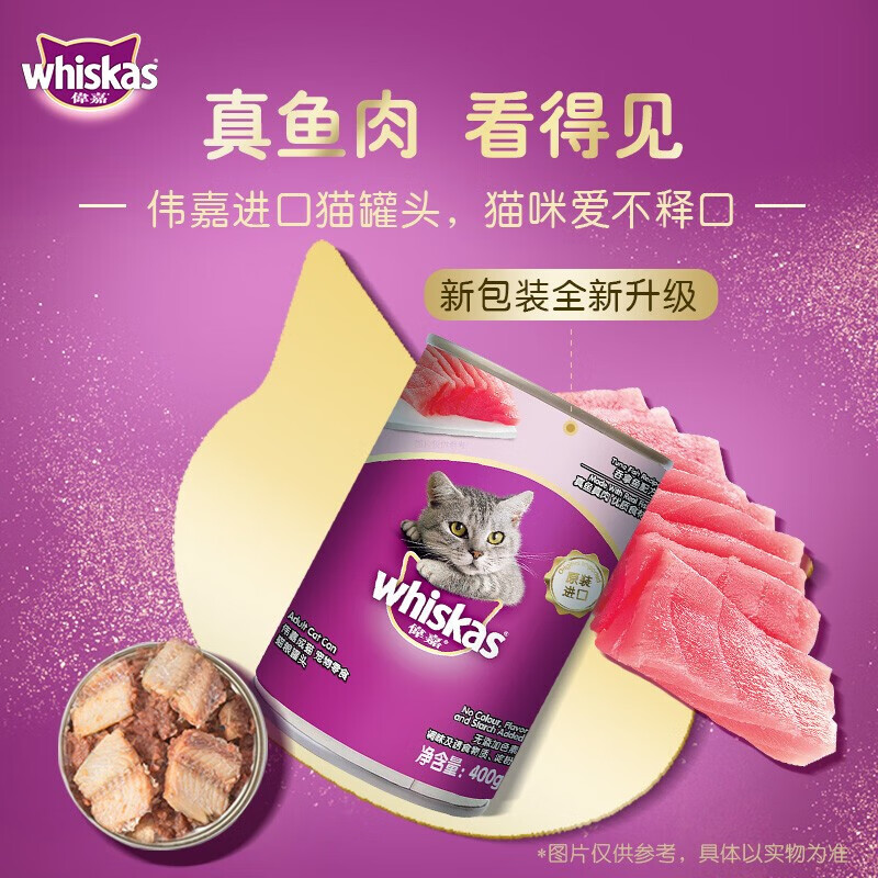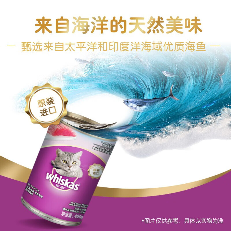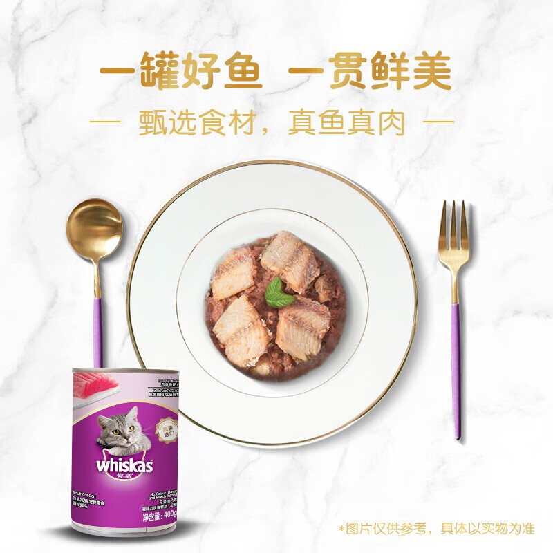 伟嘉(whiskas)宠物猫粮猫湿粮泰国进口猫罐头吞拿鱼味400g大罐头 口味混拼400g*10罐