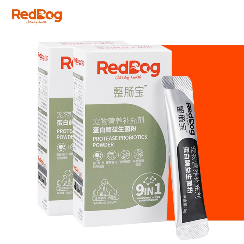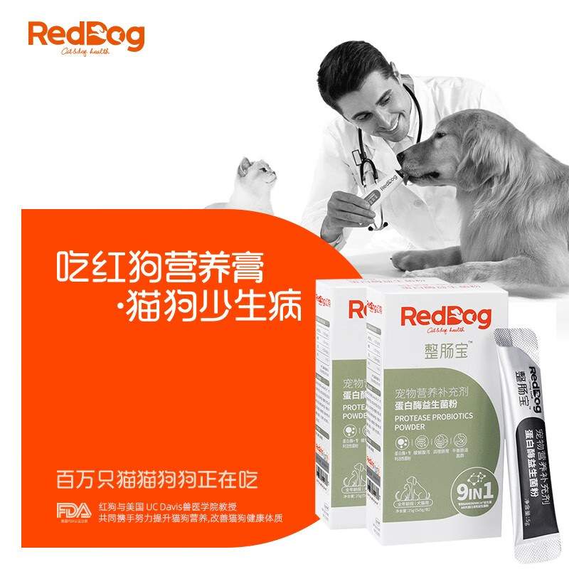 红狗RedDog 益生菌整肠宝狗狗猫咪 宠物肠胃宝蛋白酶益生元酵素腹泻调理 成幼犬猫通用25g 2盒
