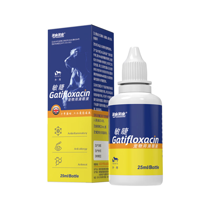 美施美康 宠物滴眼液狗狗猫咪眼药水结膜炎角膜炎眼睑炎麦粒肿泪囊炎清眼屎除泪痕用敏睫25ml