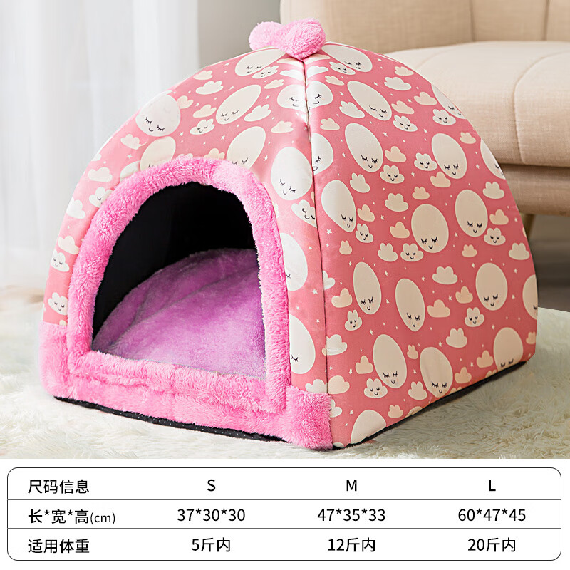嬉皮狗(hipidog)狗窝冬天保暖小型犬泰迪窝猫窝四季通用狗床房子型可拆洗狗狗用品 双耳朵房子窝【粉色】 S【37*30*30 建议体重5.斤内】