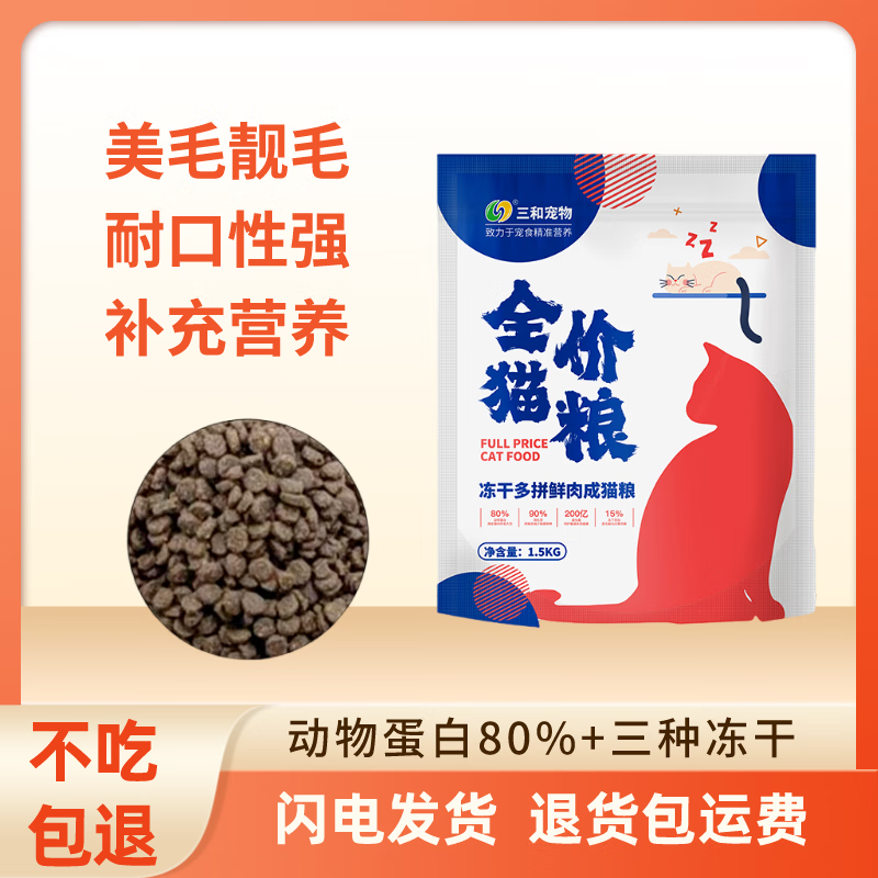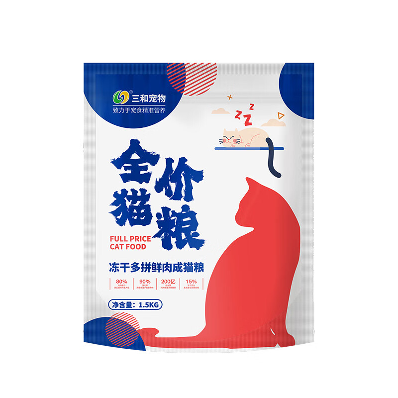 如意狗冻干多拼鲜肉成猫粮1.5kg添加鸡肉鸭肉蛋黄冻干无谷低敏鲜肉猫粮