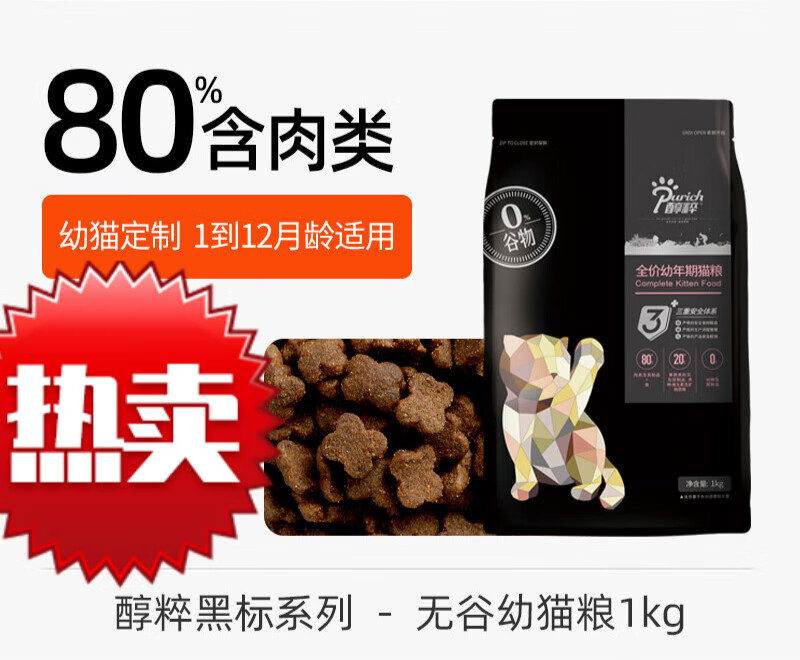 醇粹(Purich)黑标系列猫粮纯粹幼猫猫奶糕幼猫粮幼猫专用1到3月4到12月 专为幼猫研发 1kg /包