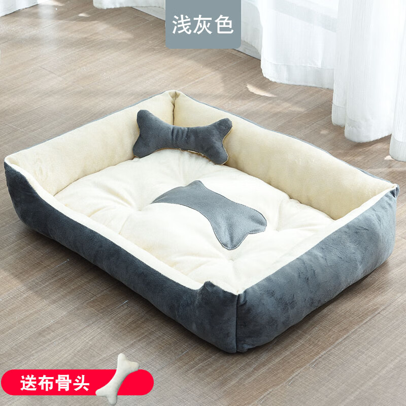 CLCEY狗窝四季通用冬天保暖泰迪小型大型犬猫窝冬季宠物垫子狗狗用品床 浅灰色 布骨头 A-50*40cm【建议5 斤内】