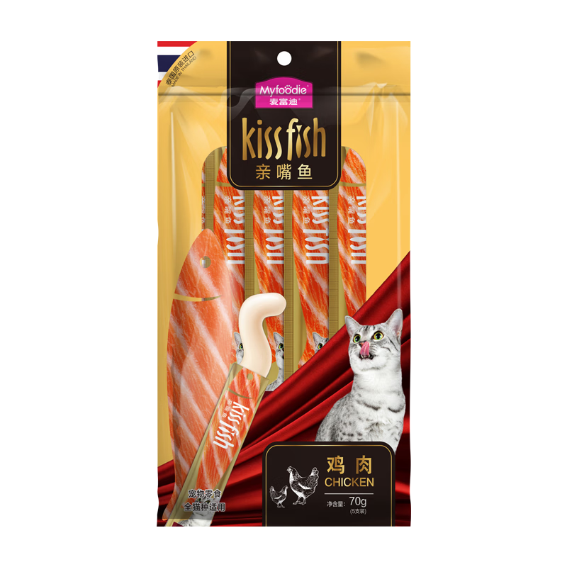 麦富迪(Myfoodie)亲嘴鱼猫条 猫湿粮秒鲜肉粒包流质补水增肥发腮成幼猫通用 亲嘴鱼鸡肉14g*5支装