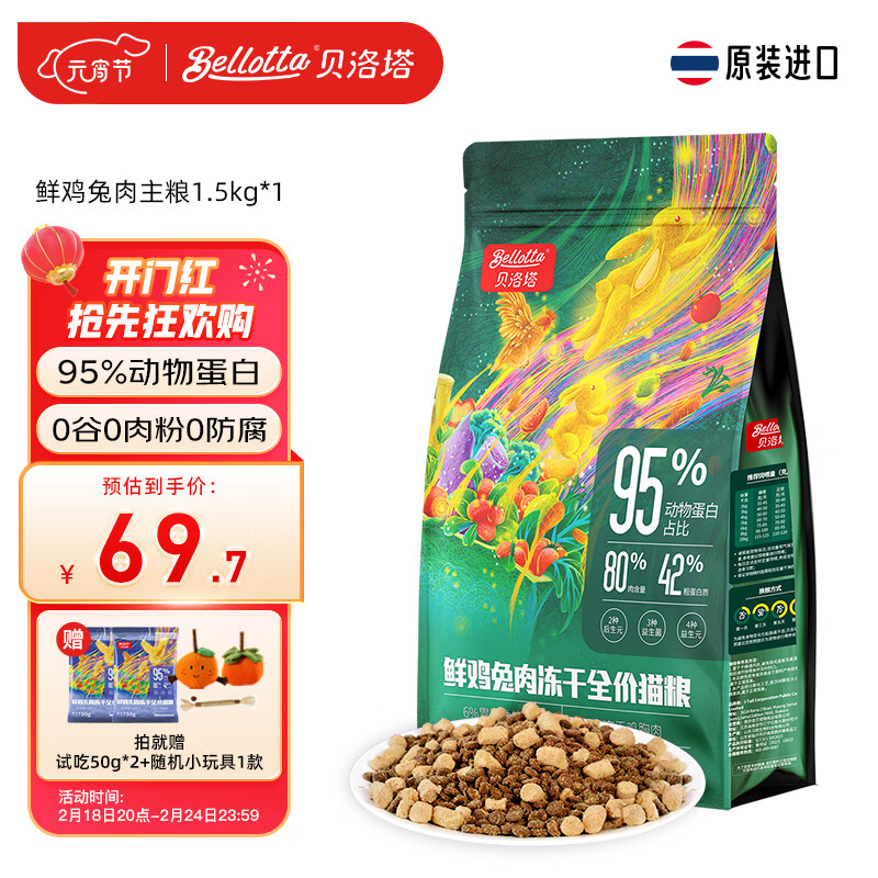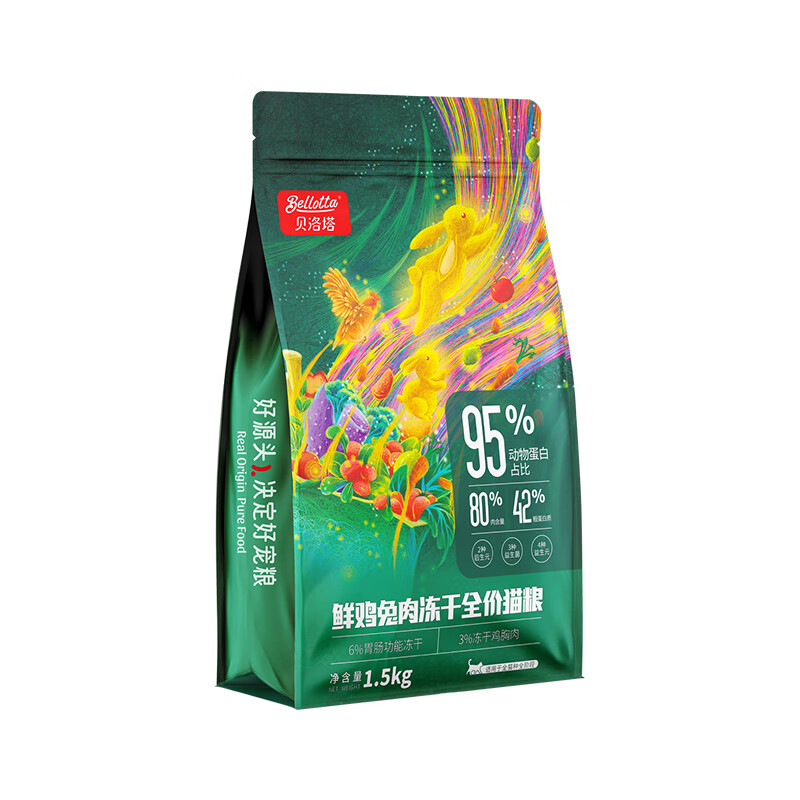 bellotta贝洛塔鲜肉冻干全价猫粮幼猫成猫通用增肥发腮营养猫咪主粮猫主粮 全价猫粮丨鲜鸡兔肉1.5KG