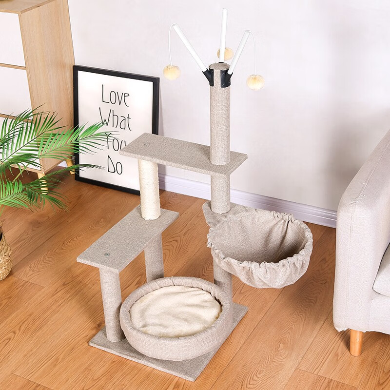 憨憨宠 猫爬架猫架带窝猫抓柱猫窝一体剑麻猫抓柱猫架子猫抓板宠物猫咪玩具猫树跳台猫玩具带窝猫爬架猫抓架 三层1米带勺款