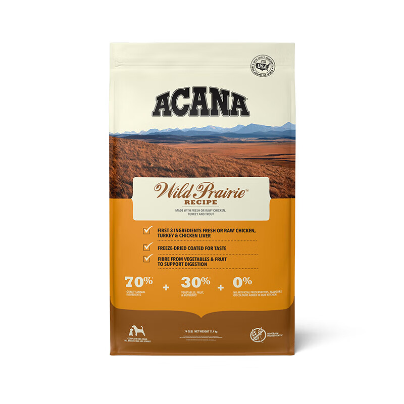 爱肯拿(ACANA)狗粮 美版进口无谷犬粮 牧场盛宴农场 成犬幼犬营养全价 有防伪标 【24年1月】牧场盛宴11.4kg
