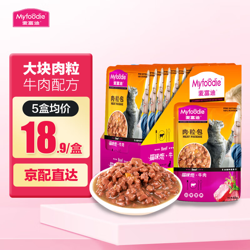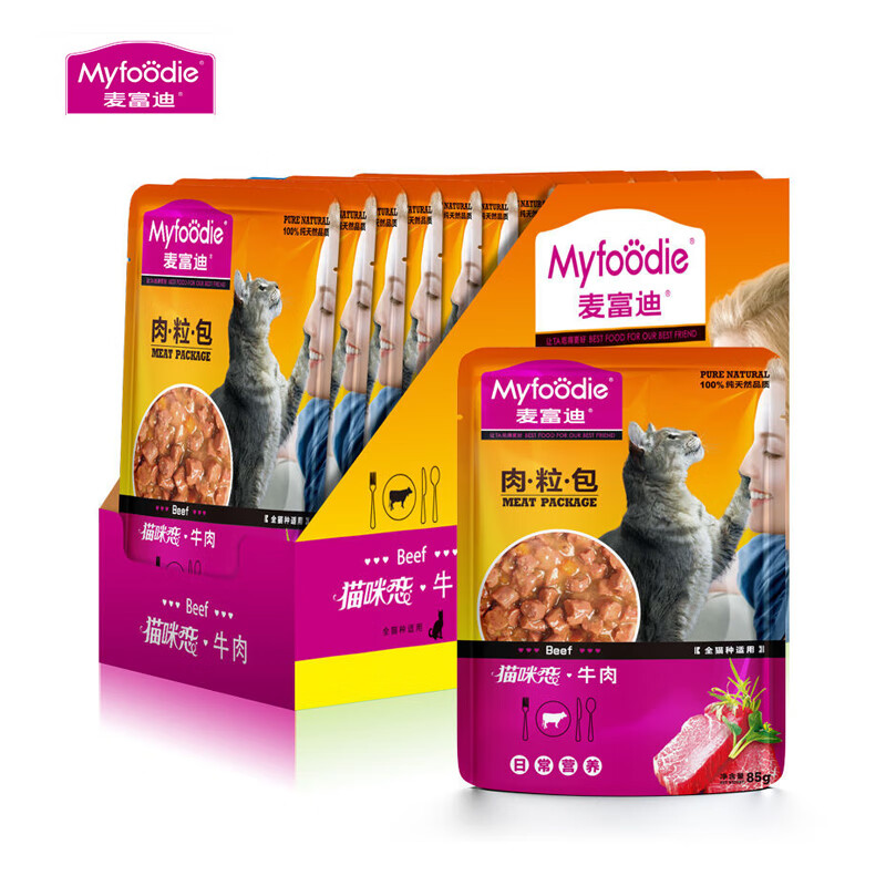 麦富迪猫零食湿粮猫咪恋肉粒包单盒装成猫幼猫全猫用 牛肉味85g*12袋